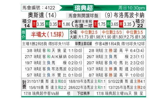 [瑞典超] 奥斯达vs布洛马波卡纳