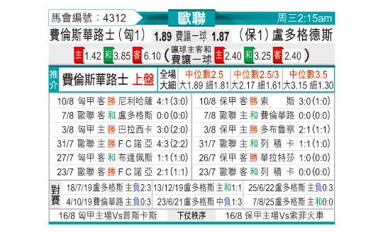 [欧冠] 费伦茨瓦罗斯vs卢多戈雷茨