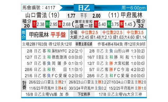 当前位置:主页 > 东方拆局 > [日职乙] 山口雷法vs甲府风林