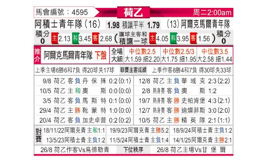 [荷乙] 阿贾克斯青年队vs阿尔克马尔青年队