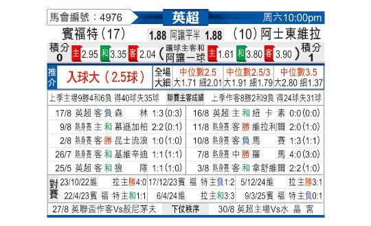 布伦特福德,阿斯顿维拉,大乐透,双色球,排列三,预测,福彩3D,快乐8,水晶宫,利物浦,布拉加,江原FC,赫根,神户胜利船,布兰,本菲卡,乌德勒支,广岛三箭,费耶诺德,波尔图,大阪樱花,福冈黄蜂,巴西国际,光州FC,费内巴切,弗拉门戈,中日德兰,皇家贝蒂斯,尼斯,哥本哈根,布鲁日,马尔默,浦和红钻,哈马比,浦项制铁,柏太阳神,大阪钢巴,清水鼓动,博塔弗戈,河床,博德闪耀,川崎前锋,阿拉维斯,TBD,托特纳姆热刺,克卢日,成都蓉城,全北现代,切尔西,帕尔梅拉斯,阿森纳,圣保罗,吉维森特,金泉尚武,黎巴嫩,中