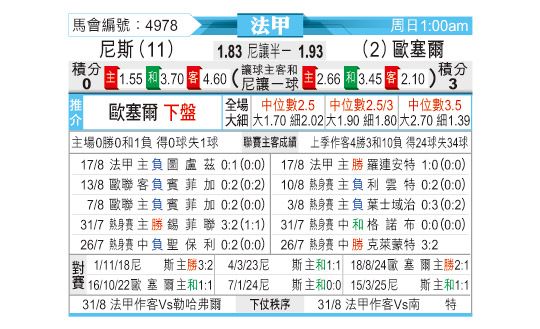[法甲] 尼斯vs欧塞尔