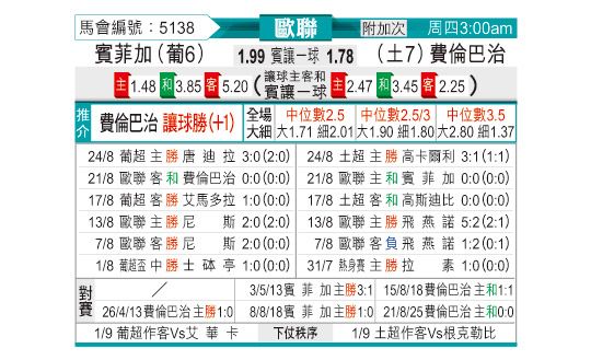 [欧冠杯] 本菲卡vs费内巴切