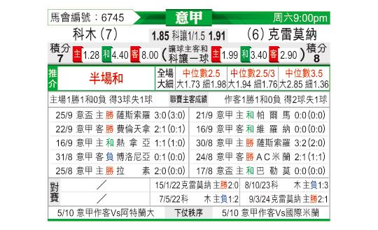 当前位置:主页 > 东方拆局 > [意甲] 科莫vs克雷莫纳