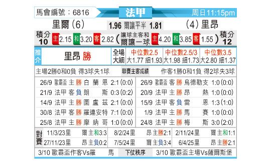 [法甲] 里尔 vs 里昂
