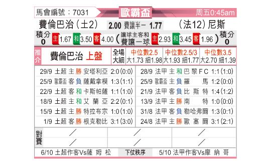 费内巴切,尼斯,大乐透,排列三,双色球,预测,快乐8,福彩3D,利物浦,阿森纳,巴塞罗那,水晶宫,神户胜利船,切尔西,本菲卡,纽卡斯尔联,广岛三箭,皇家马德里,马赛,斯图加特,马德里竞技,毕尔巴鄂竞技,那不勒斯,皇家贝蒂斯,马洛卡,多特蒙德,国际米兰,西班牙人,诺丁汉森林,埃弗顿,伯恩利,曼城,比利亚雷亚尔,莱万特,巴伦西亚,尤文图斯,富勒姆,阿斯顿维拉,罗马,法兰克福,狼队,布莱顿,巴列卡诺,勒沃库森,西汉姆联,都灵,摩纳哥,博洛尼亚,奥萨苏纳,塞维利亚,尼斯,科莫,AC米兰,乌德勒支,埃尔切,布伦特福